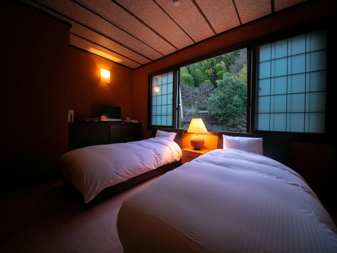 源泉掛流し天然温泉100%露天風呂付客室は、当館一の贅沢な客室