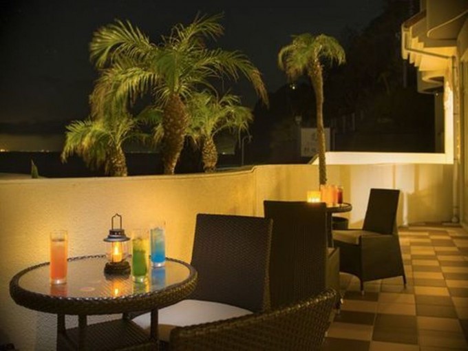 夕陽の名所「旅人岬」は目の前。当館は、旅人岬と同じ景観をお部屋のテラスや専用露天風呂からお愉しみいただける唯一の宿です